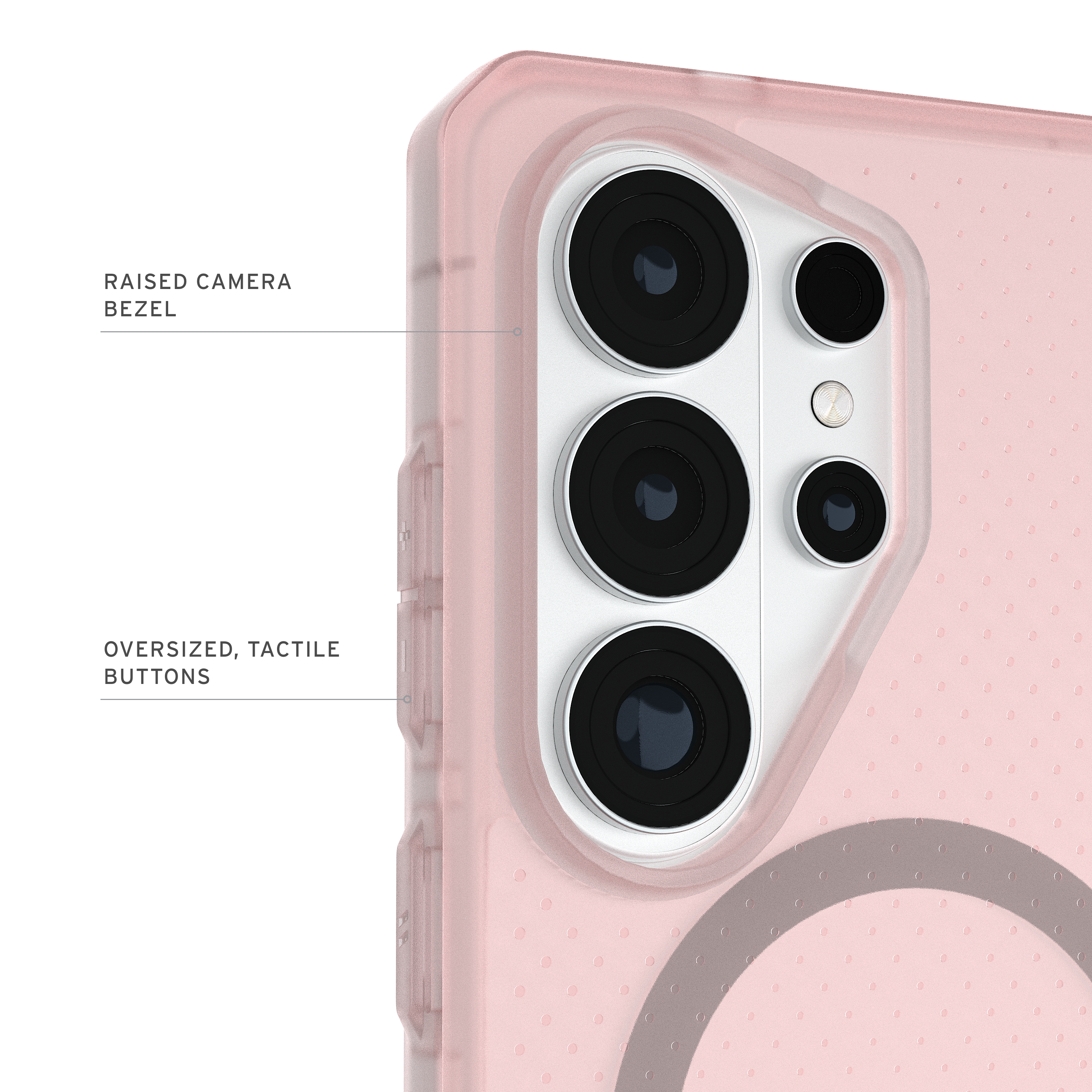 The Dot series is an opaque, lightweight case that offers exceptional military drop protection, trusted and loved by UAG. Crafted with a rugged co-mold of translucent PC and TPU, it features an advanced impact-resistant core and a raised protective screen surround to guard your device against drops and scratches. Our integrated magnet module locks your device securely in place when using wireless chargers or other magnetic accessories. Features an enhanced textured anti-slip traction grip that ensures a secure hold, reducing the chance of accidental drops.