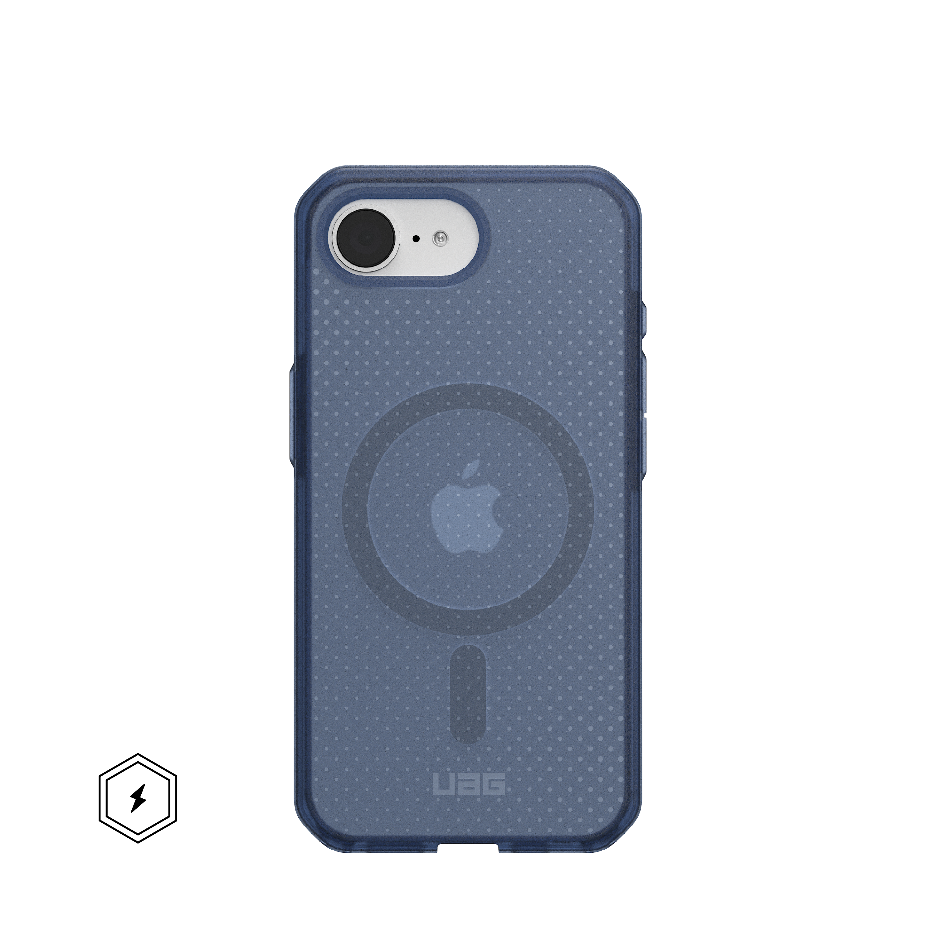 The Dot series is a translucent lightweight case with exceptional military drop protection you trust and love from UAG. Crafted with a rugged co-mold of translucent PC and TPU, it features an advanced impact-resistant core and a raised protective screen surround to guard your device against drops and scratches. Our integrated magnet module locks your device securely in place when using wireless chargers or other magnetic accessories. Features an enhanced textured anti-slip traction grip that ensures a secure hold reducing the chance of accidental drops.