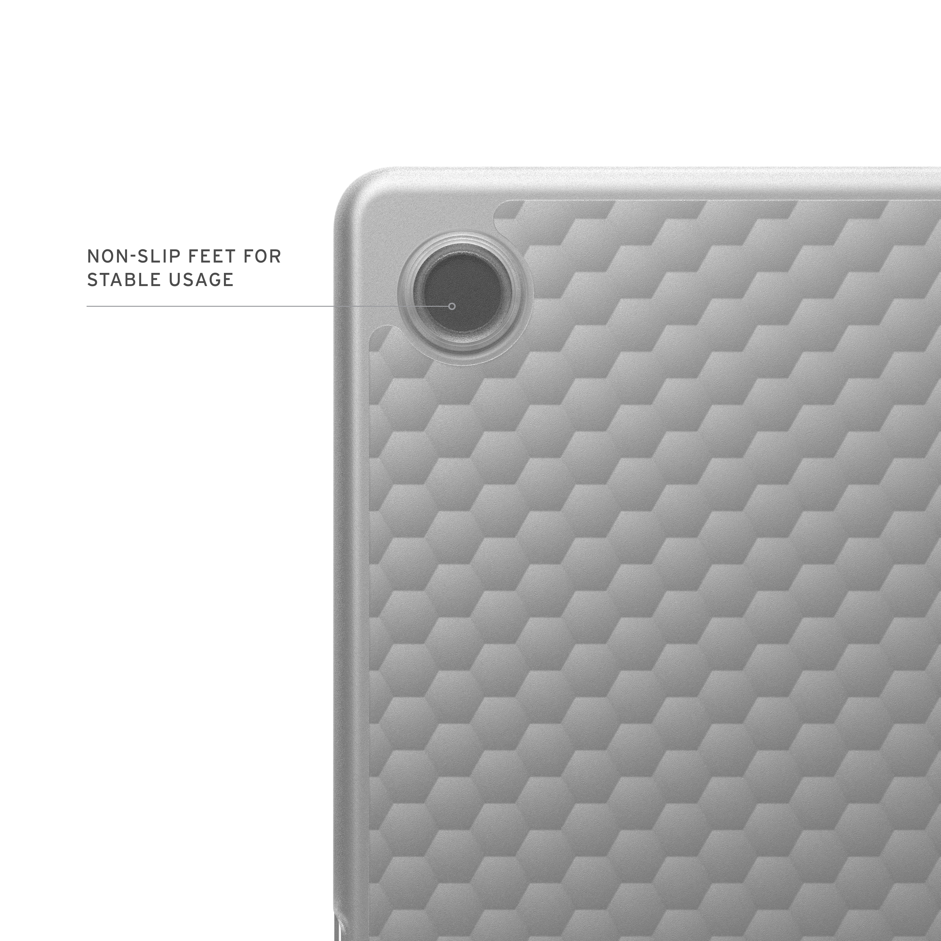The Essential Armor Case features a lightweight, one-piece hinged construction that shields your device with premium, impact-resistant materials. The translucent shell showcases your laptop’s design while the signature hammered hex pattern adds an industrial edge. With a tactile hinge cover, non-slip feet, and easy access to all ports, this case ensures performance and protection.