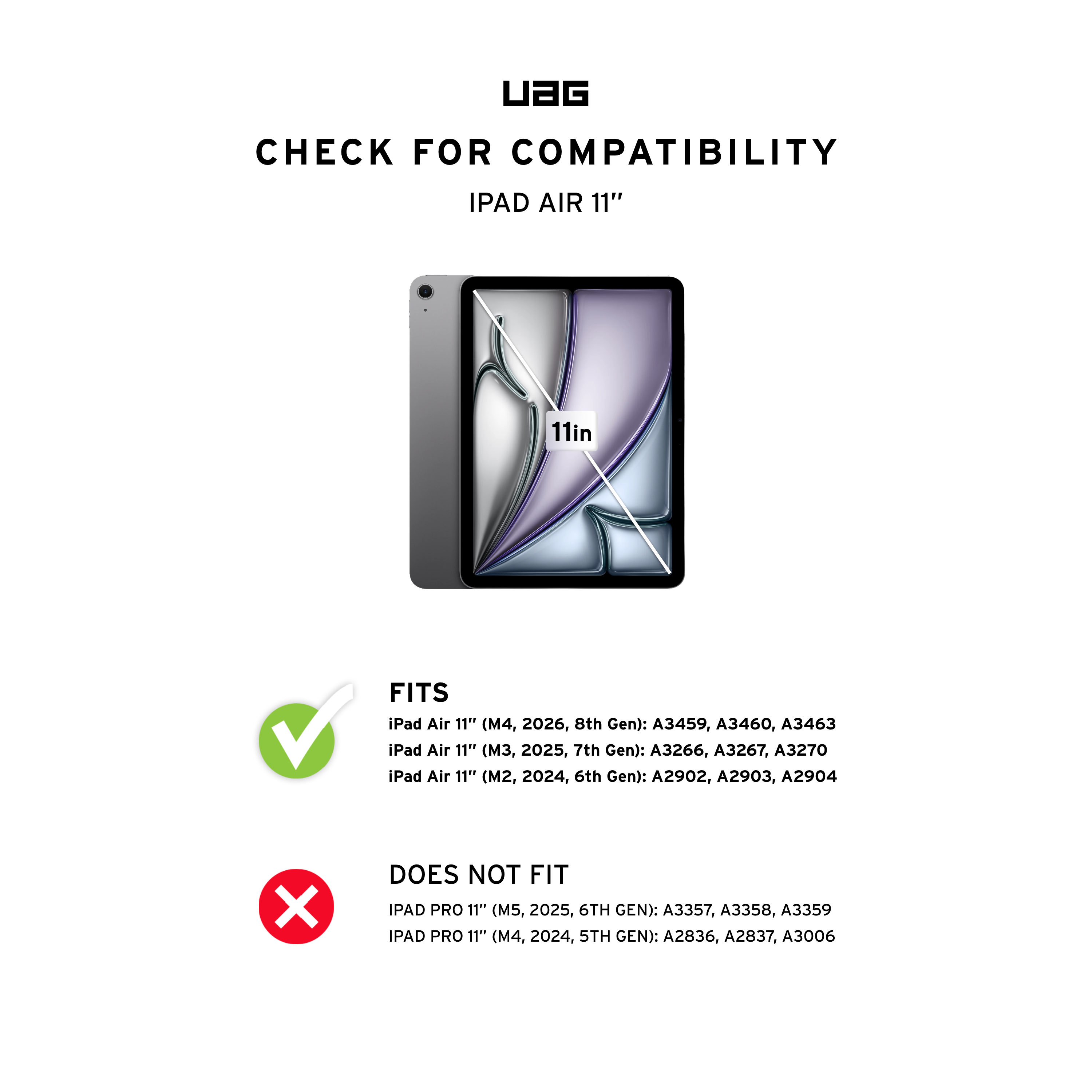Compatible with iPad Air 11" (7th Gen, 2025, M3) Models: A3266, A3267.