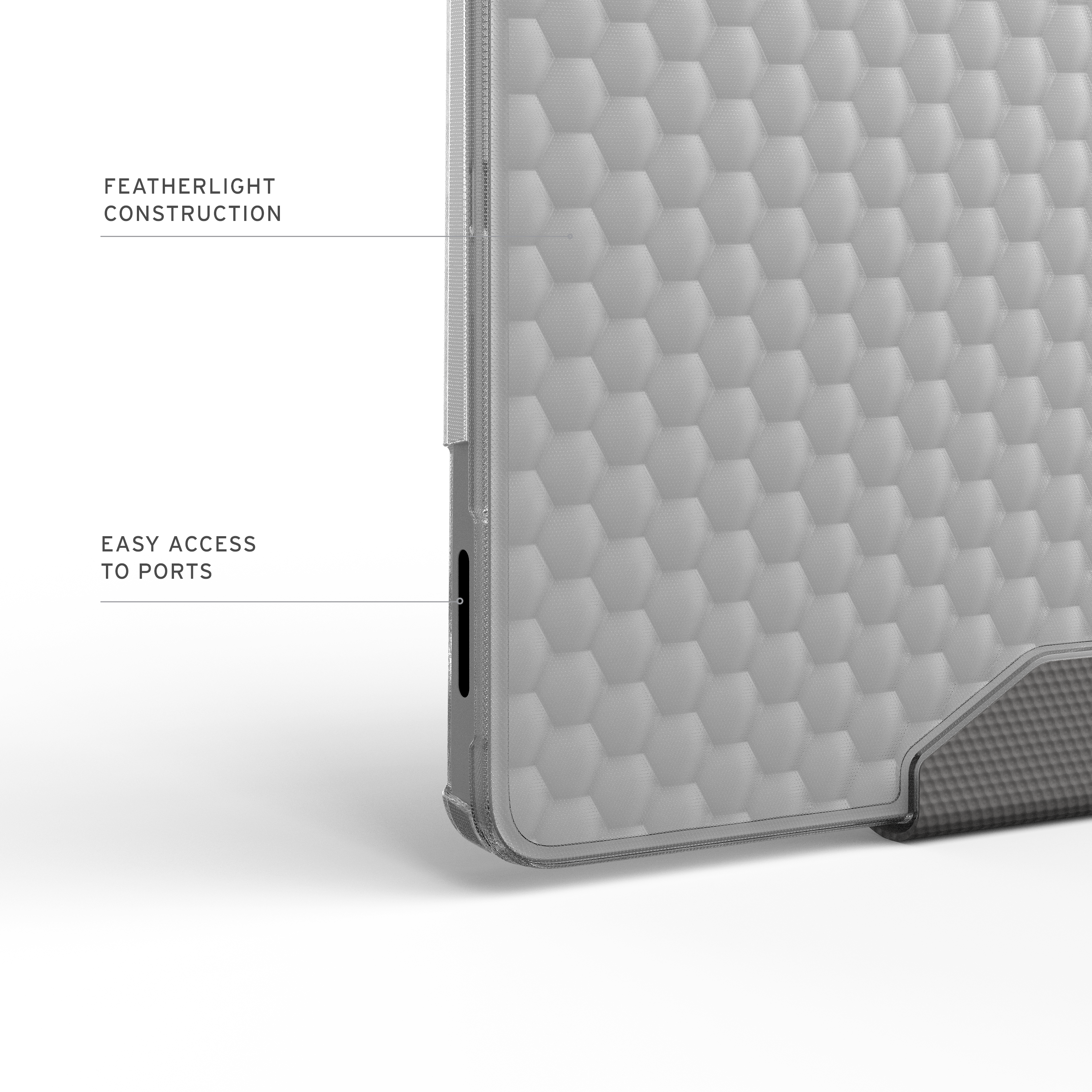 Sleek, Translucent Style: The signature hammered hex pattern and translucent shell combine to create a bold, minimalist design.