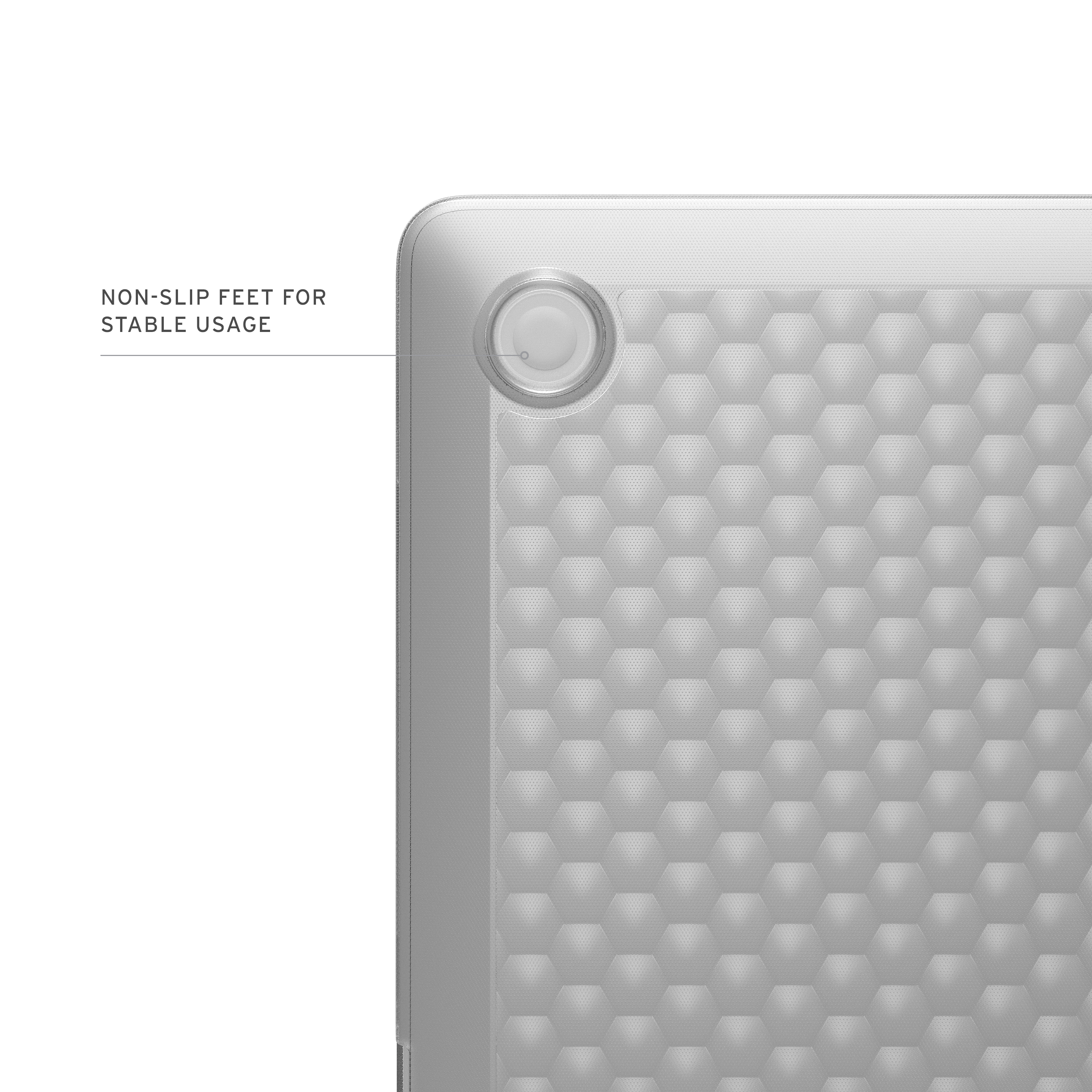 The Essential Armor Case features a lightweight, one-piece hinged construction that shields your device with premium, impact-resistant materials. The translucent shell showcases your laptop’s design while the signature hammered hex pattern adds an industrial edge. With a tactile hinge cover, non-slip feet, and easy access to all ports, this case ensures performance and protection.