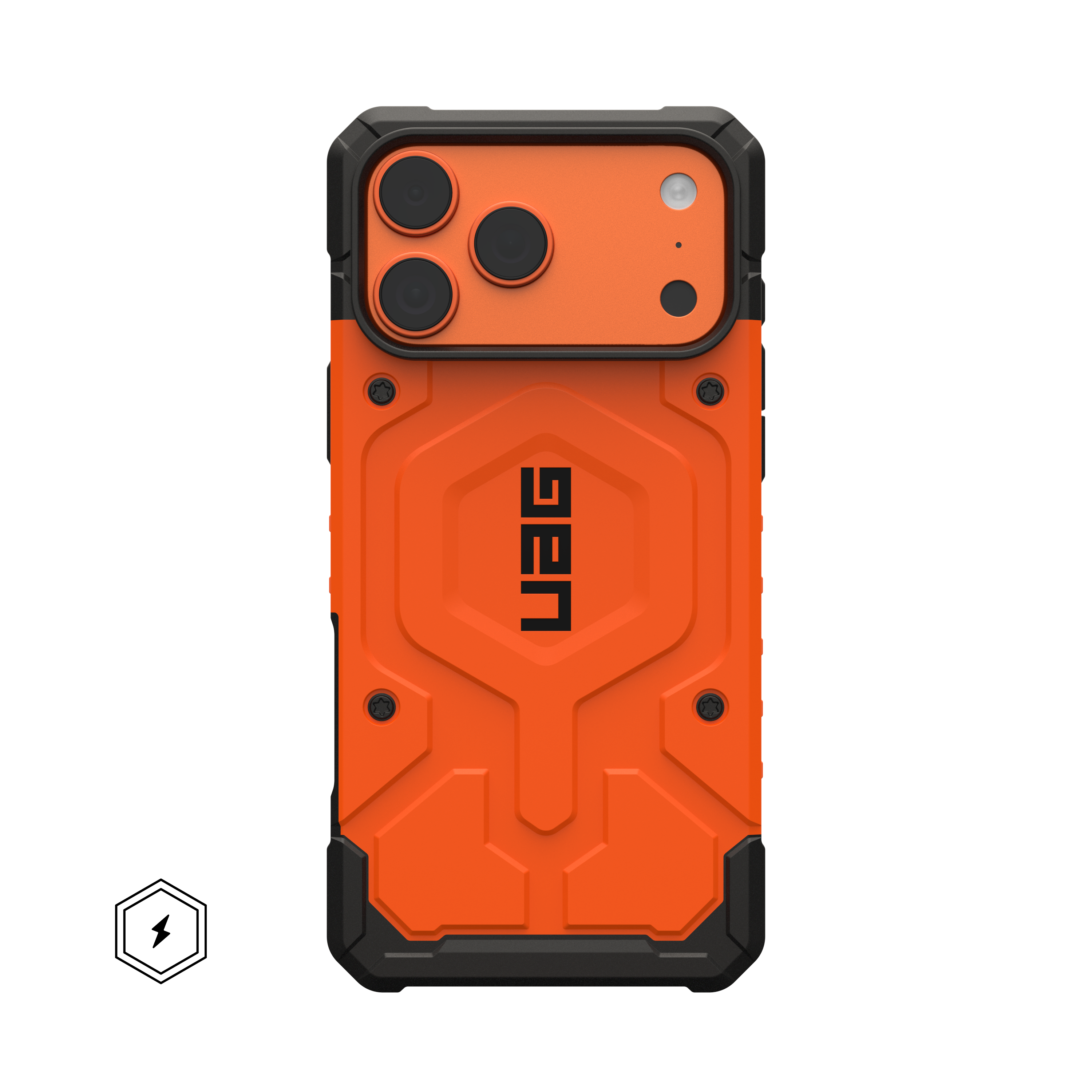 The Pathfinder Series Case is the ideal choice for those seeking a rugged, adventure-ready protection with full MagSafe compatibility. Now, online only, in our exclusive orange colorway. This case combines an ultra-lightweight armor shell with an impact-resistant frame and a hex pattern core, offering superior drop and shock protection. The raised screen surround safeguards your display from accidental drops, while tough TPU bumpers provide extra corner protection. With a powerful built-in magnet module, your device securely locks in place for seamless MagSafe charging compatibility and supports Apple Pay.