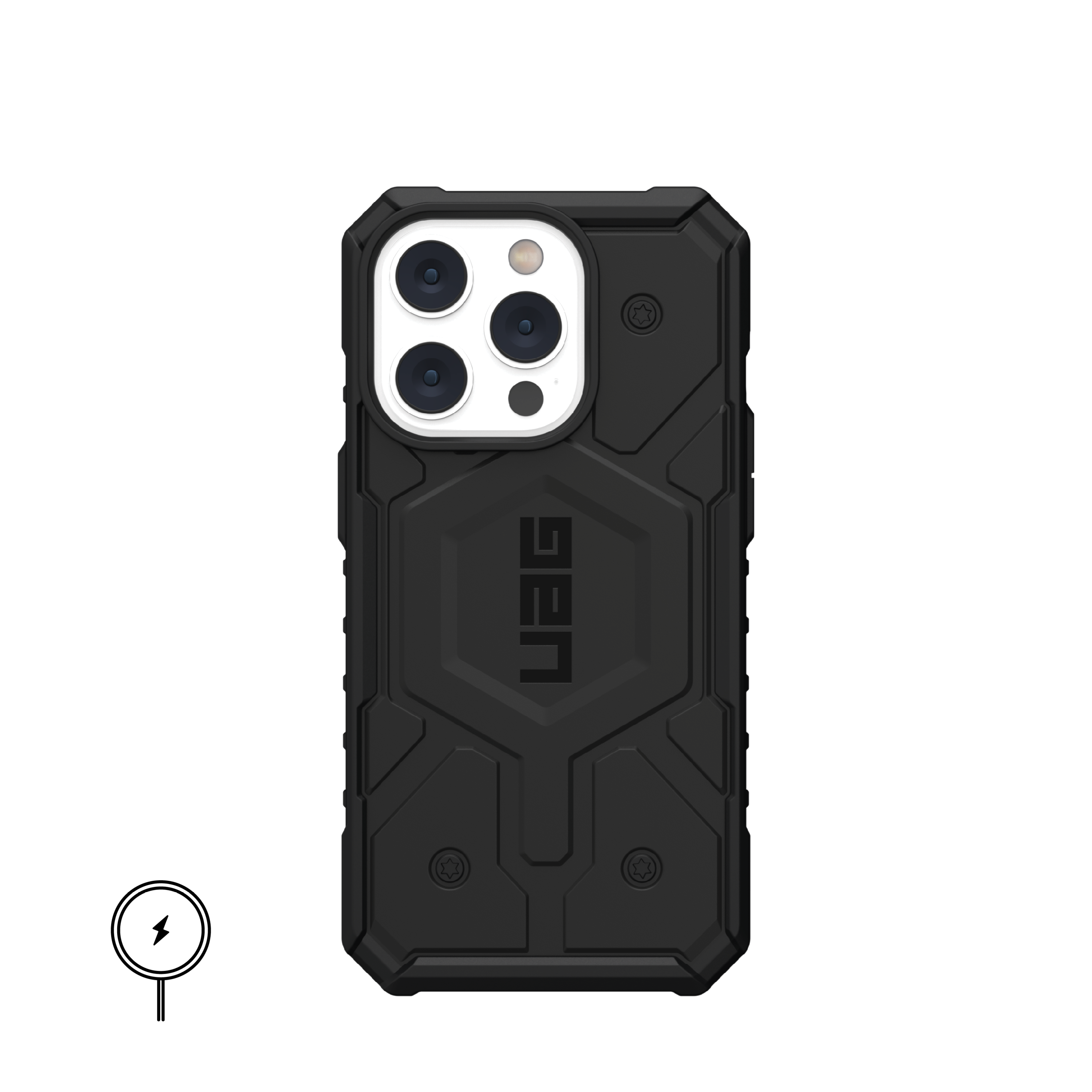 The Pathfinder Series is the perfect companion for action and adventure, featuring MagSafe accessory compatibility. Featuring an ultra-lightweight armor shell, an impact-resistant frame, and a hex pattern core, providing enhanced drop and shock protection to keep your device safe in any situation. The enhanced perimeter raised screen surround ensures that your display remains shielded from accidental drops and impacts, while the TPU bumpers provide added corner protection. With the powerful built-in magnet module, your device securely locks in place, ensuring seamless MagSafe charging compatibility. This is the ultimate protective companion, combining rugged durability and a timeless UAG design.