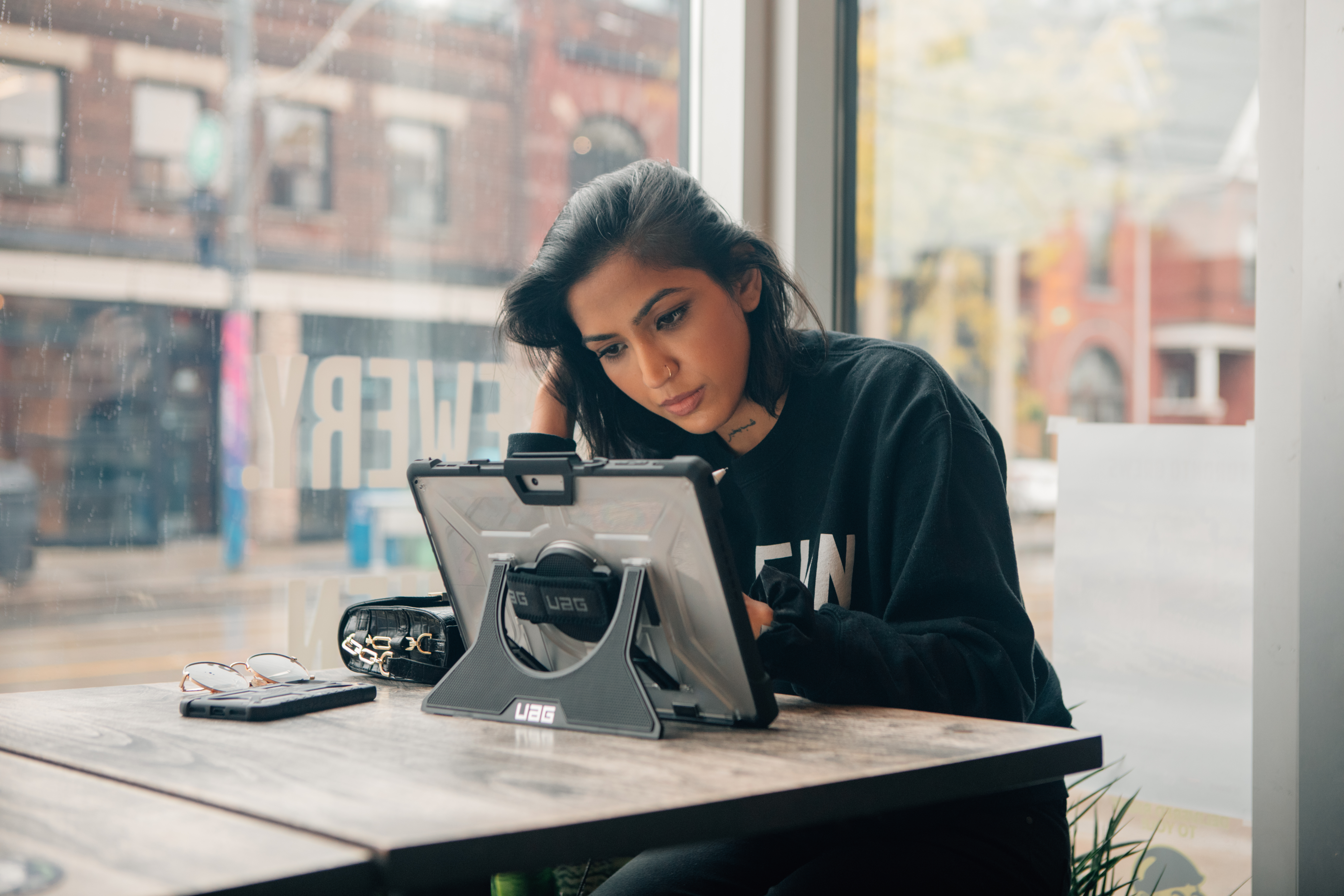 The Plasma Series case is meticulously designed for professionals who rely on their tablets both in the field and in the office. Featuring a rugged armor shell and impact resistant rubber bumpers for premium shock and drop protection ensuring your tablet withstands the toughest days on the job. The built in 360-degree rotational hand strap allows you unparalleled freedom and security while on the go offering a secure grip in any orientation. A sturdy built-in kickstand transforms your tablet into a laptop like workstation with ease perfect for presentations, or viewing content. The dedicated - pen storage allows you to keep your Surface Pen close by and secure. We’ve also included an optional shoulder strap giving you even more portability allowing you to transport your tablet hands free. More than just protection for your tablet; it’s a premium comprehensive solution designed to deliver durability, mobility, and convenience.