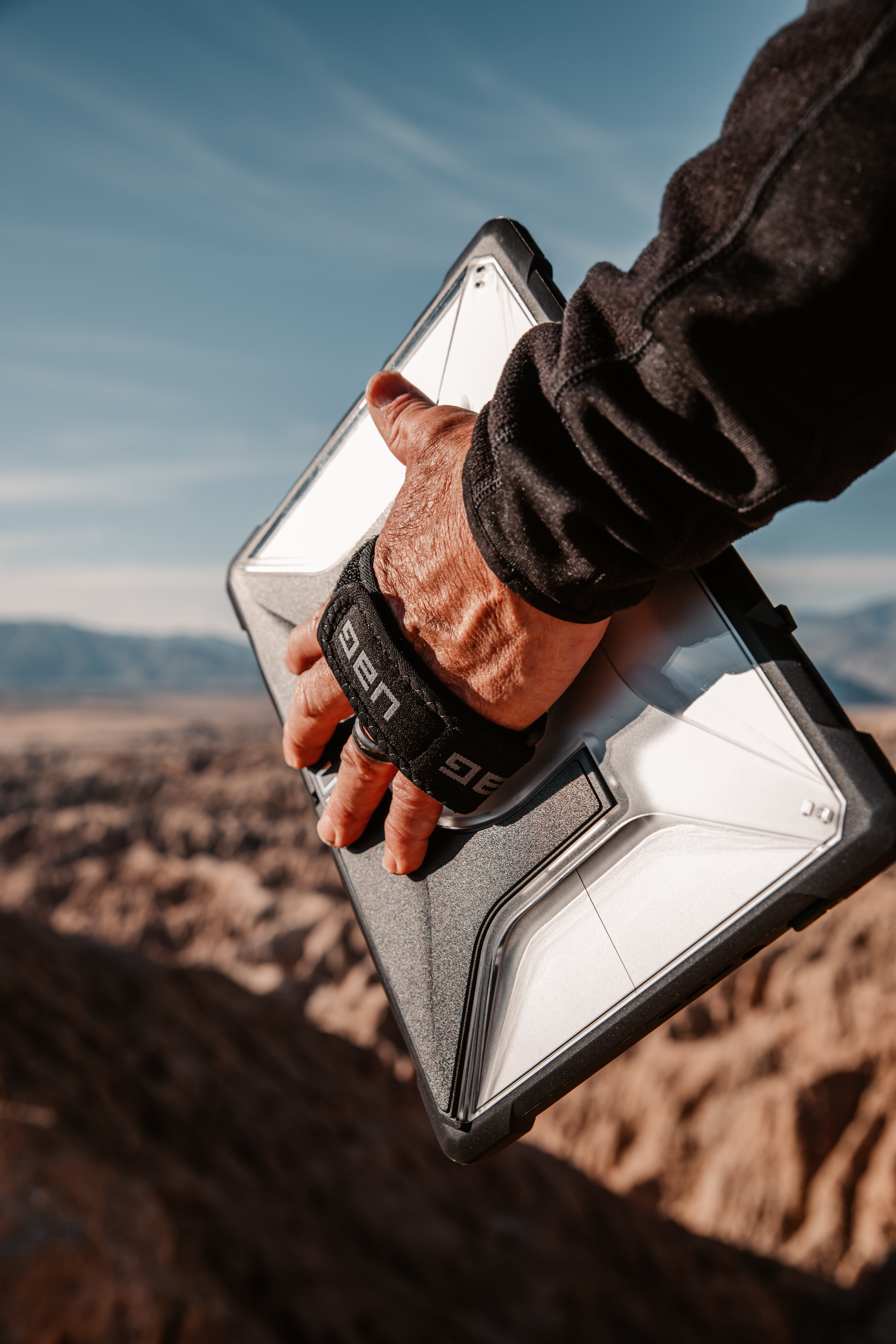 Built-In kickstand. 360-Degree Rotating Hand strap