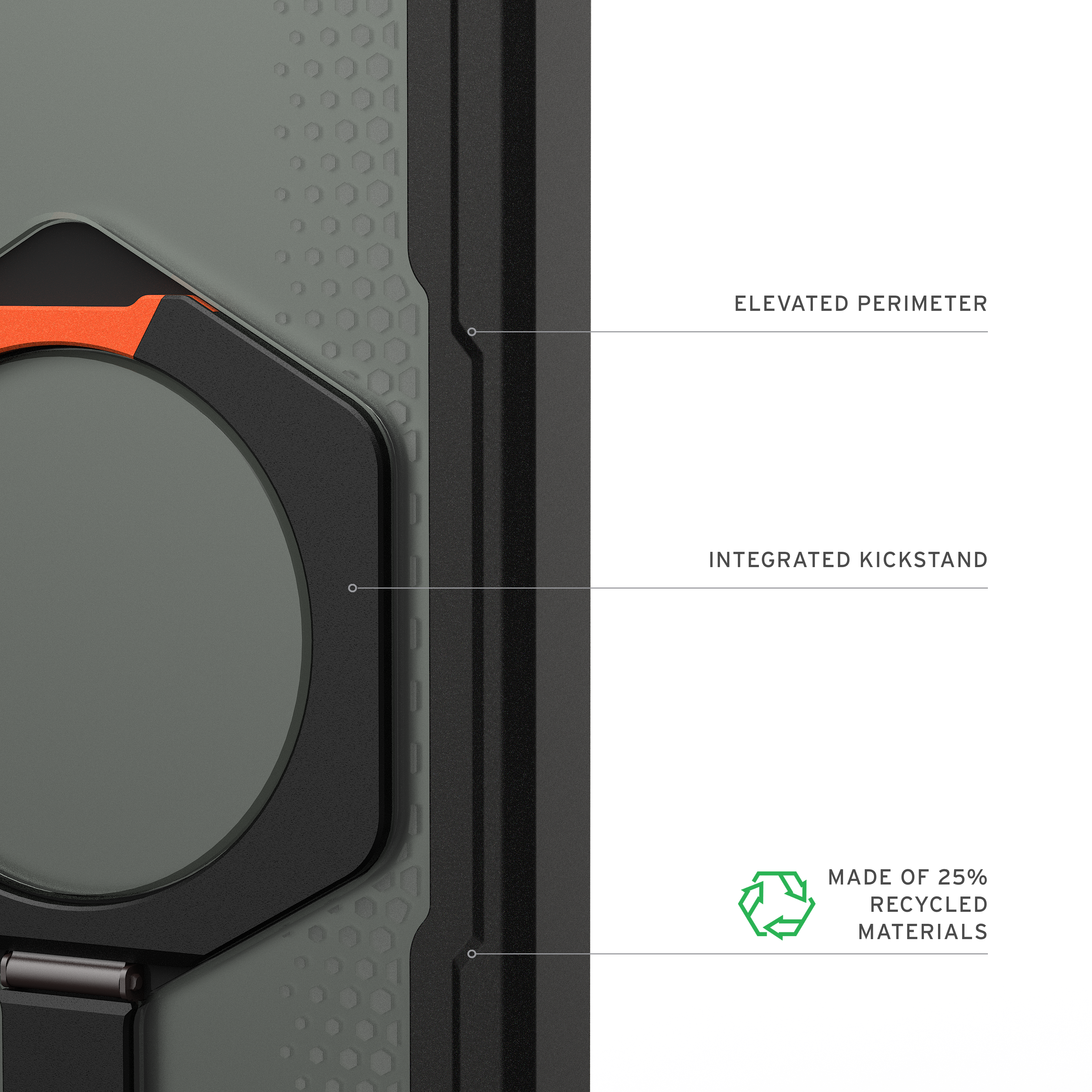 Integrated Metal Kickstand: Hands-free usage in portrait and landscape mode.