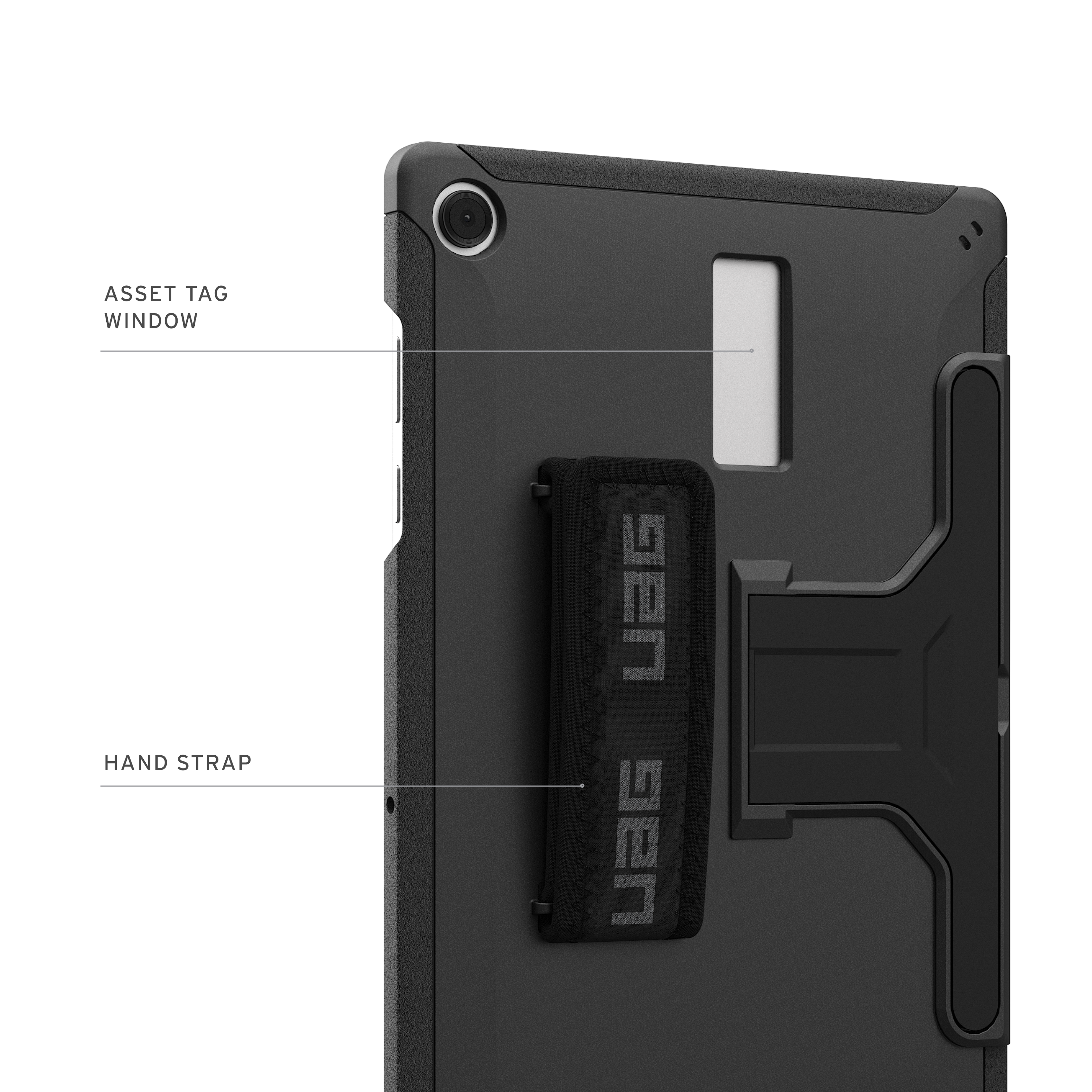 Scout Galaxy Tab A11+ Plus 11" with Kickstand & Hand strap Case with Asset Tag Window
