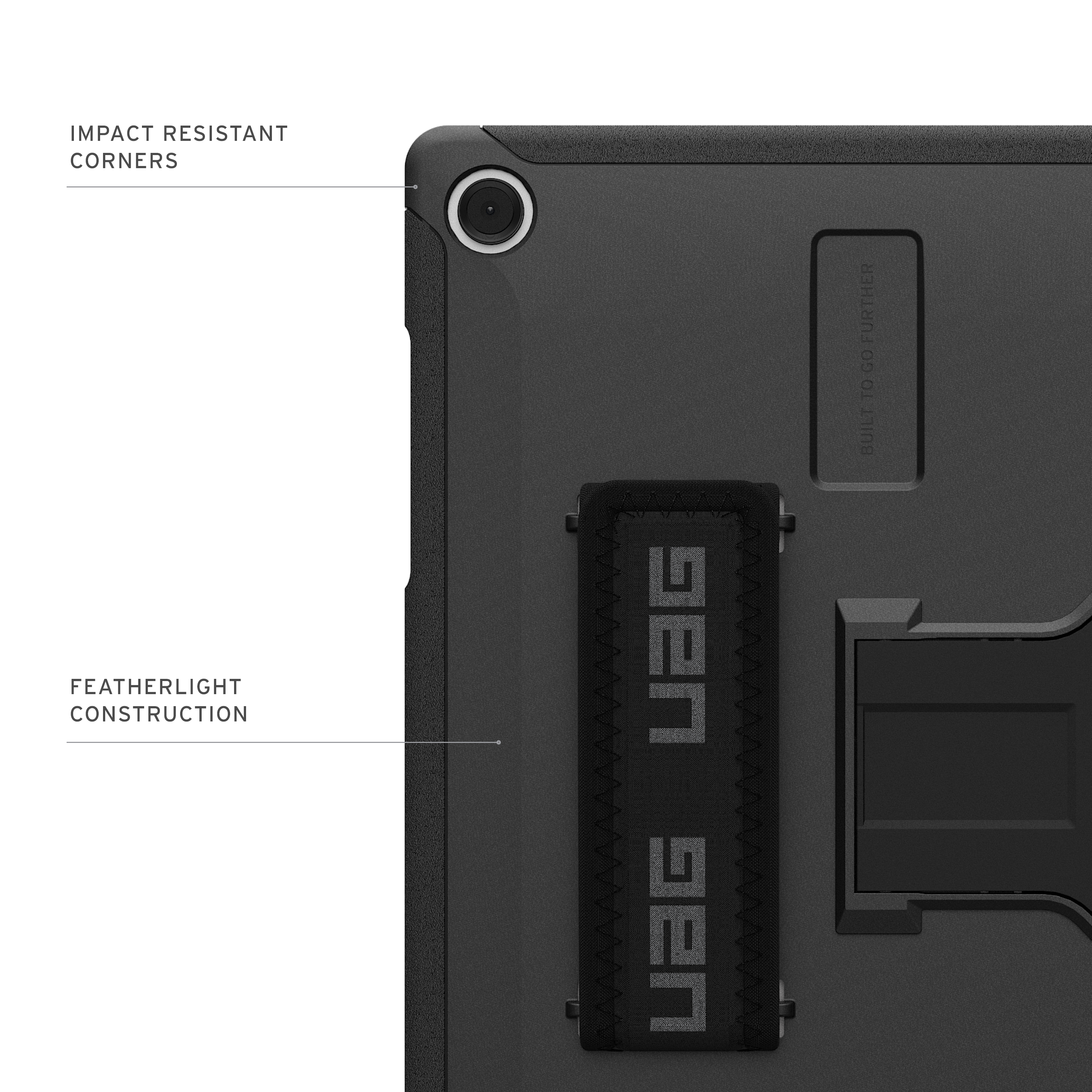 Minimalist look with complete coverage. The Scout features a featherlight construction and impact-resistant core. The built-in kickstand transforms your tablet into laptop mode or video viewing mode. Along with a functional and comfortable hand strap, so you can work on the go. Medical grade wipe tested, meaning it will not compromise the condition of the case when using medical grade wipes. Perfectly suited for those who work on the go or in the field. Versatile and protective, this case is essential for your tablet.
